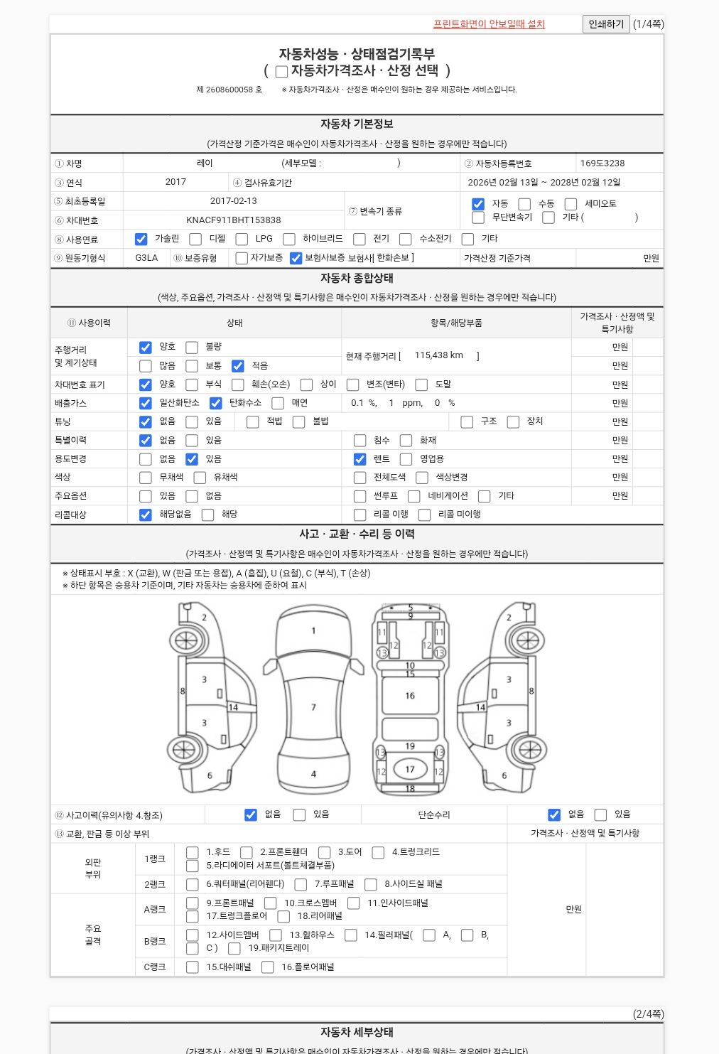 | 색상 | 흰색 | 주행거리 | 115,438km |