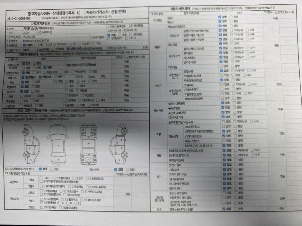 - 성능점검을 받은 중고자동차는 주요부품이 점검 항목과 차량의 상태가 상이한 경우 차량인수일을 기준으로 30일
