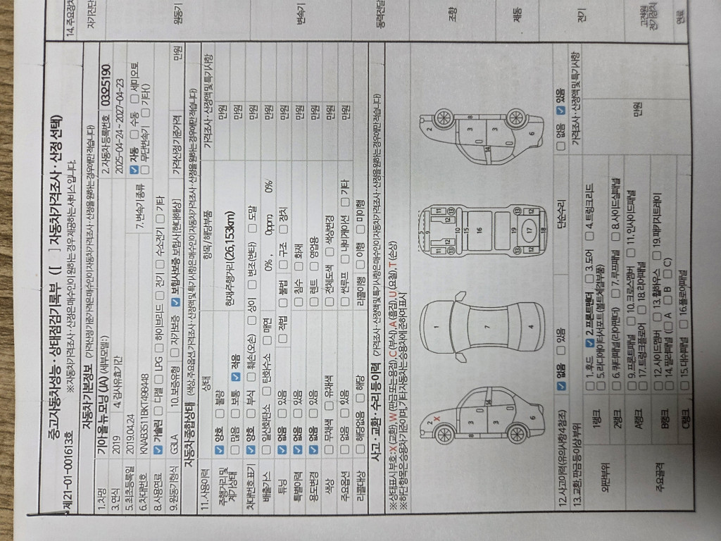 | 차대번호 | KNAB3511BKT498448 | 성능번호 | |
