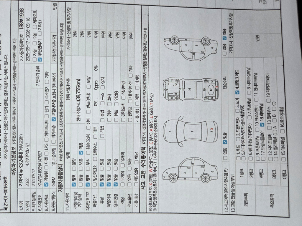 | 차대번호 | KNAF241BENA147607 | 성능번호 | |