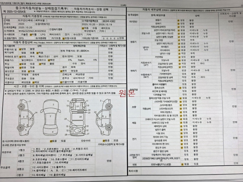 차대번호 WVGZZZ5NZLW402932 성능번호