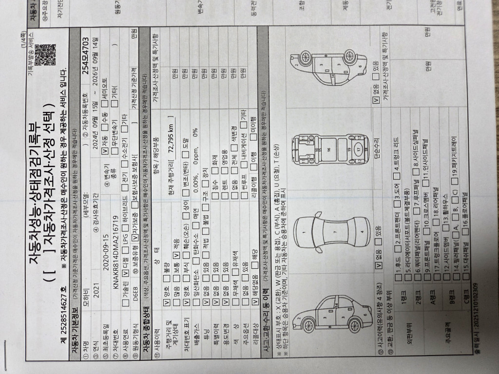 | 차대번호 | KNAKR814DMA216719 | 성능번호 | |