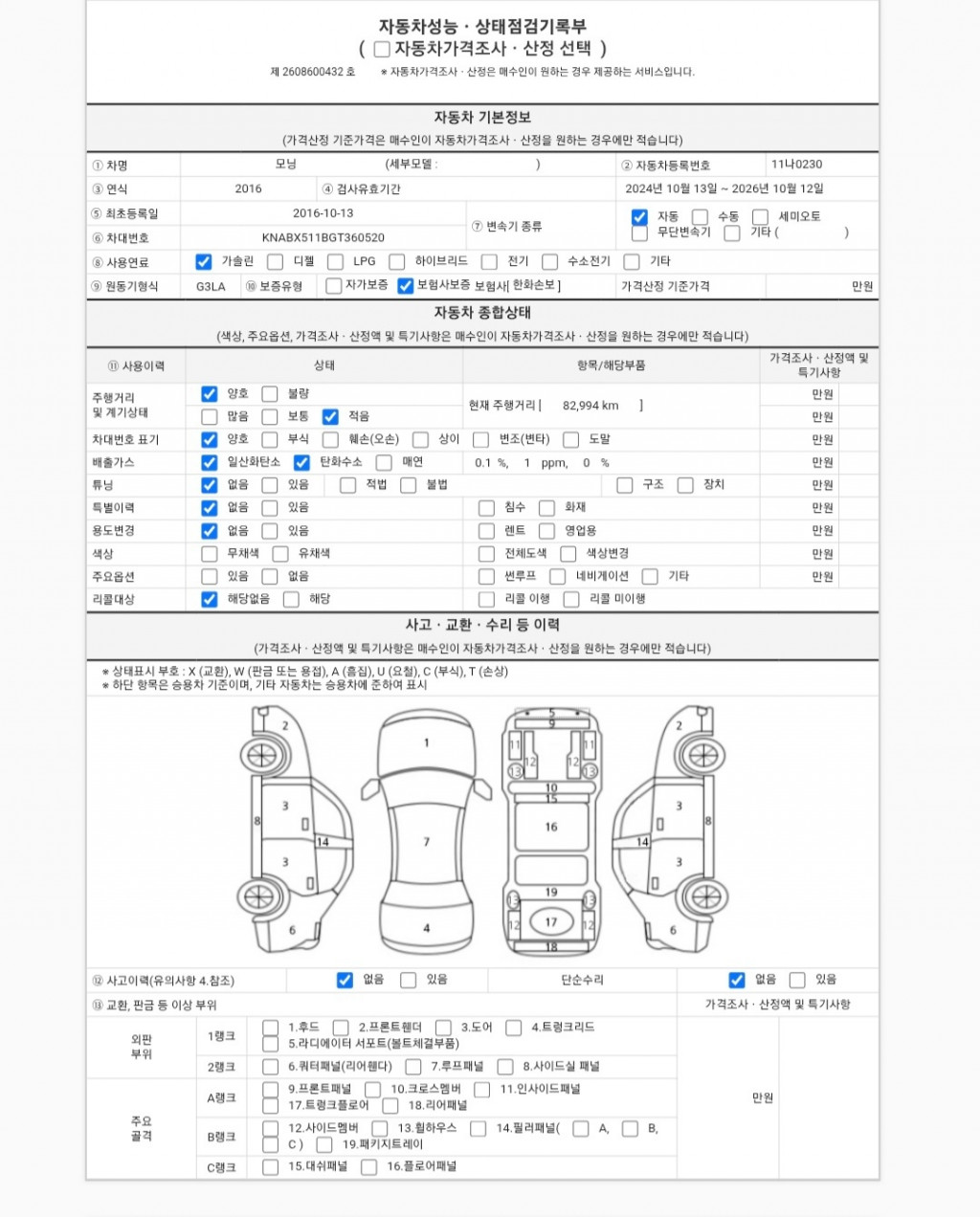 차대번호 KNABX511BGT360520 성능번호