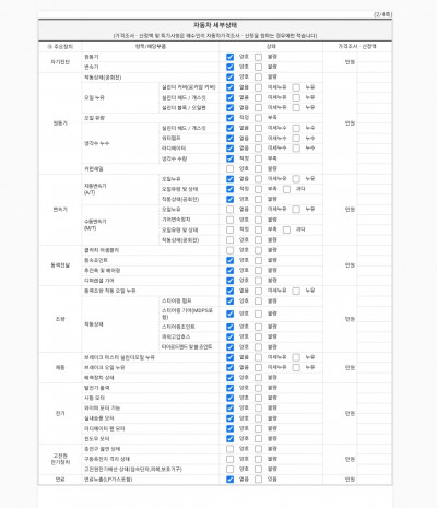 - 성능점검을 받은 중고자동차는 주요부품이 점검 항목과 차량의 상태가 상이한 경우 차량인수일을 기준으로 30일
