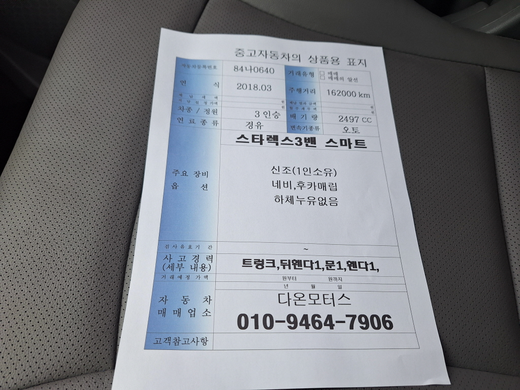 판매가 : 850만원 차량번호 : 84나0640