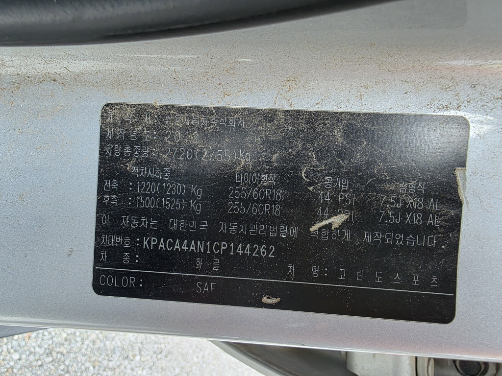 차대번호 KPACA4AN1CP144262 성능번호 102559