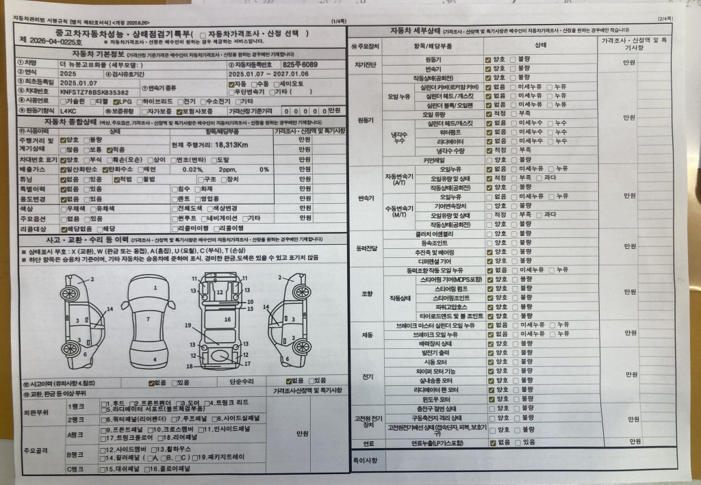 차대번호 KNFSTZ78BSK835382 성능번호