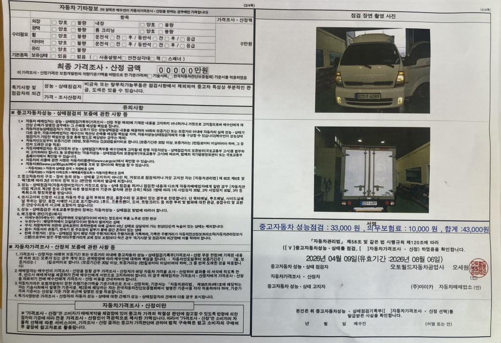 자동차성능점검을 받고 소정의 양식으로 등록을 마칠 경우 보증하는