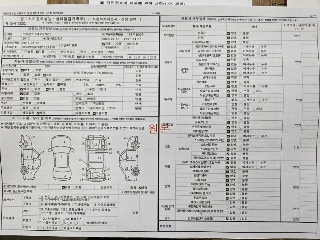 - 성능점검을 받은 중고자동차는 주요부품이 점검 항목과 차량의 상태가 상이한 경우 차량인수일을 기준으로 30일