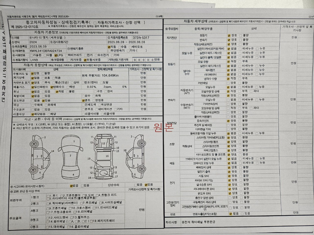 차대번호 KMHL341DBRA324734 성능번호